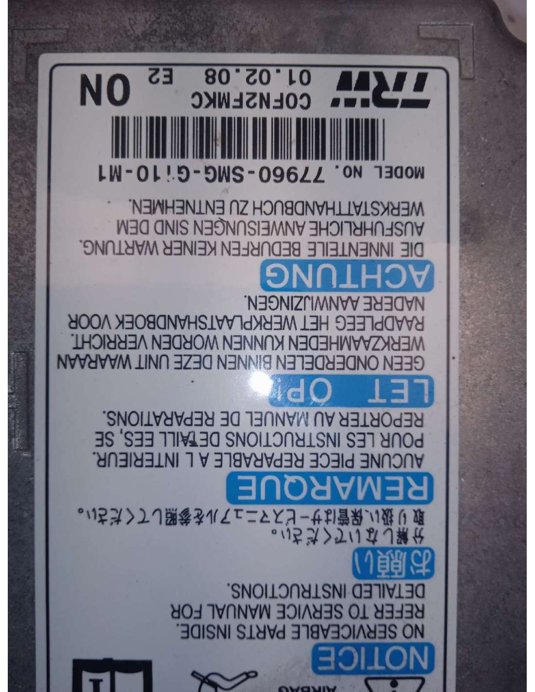 CENTRALITA AIRBAG RECICLADO DE HONDA CIVIC 5 PUERTAS (FK) 2.2 i-CTDi Executive. Identificador 807065. Familia: ELECTRICIDAD. Referencia: C0FN2FMKC