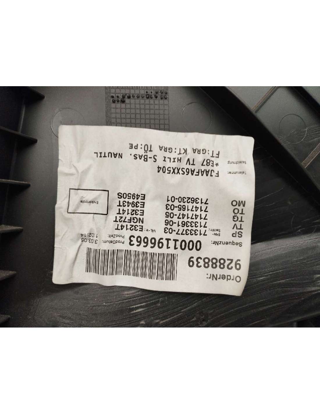 GUARNECIDO PUERTA TRASERA IZQUIERDA RECICLADO DE BMW SERIE 1 BERLINA (E81/E87). Identificador 782484. Familia: INTERIOR. Referencia: 7067959