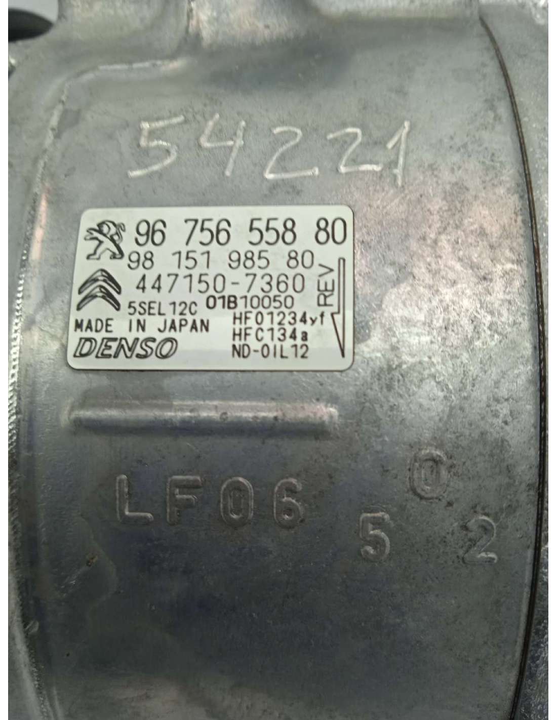 COMPRESOR AIRE ACONDICIONADO RECICLADO DE PEUGEOT 3008 GT. Identificador 823895. Familia: CLIMATIZACIÓN. Referencia: 9675655880