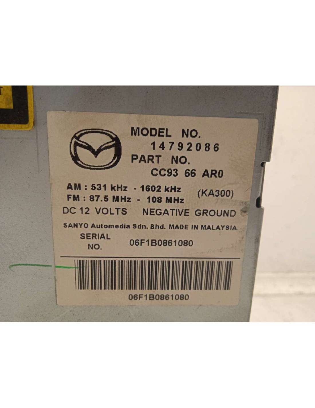 SISTEMA AUDIO / RADIO CD RECICLADO DE MAZDA 5 BERLINA (CR). Identificador 734722. Familia: ELECTRICIDAD. Referencia: CC93669R0